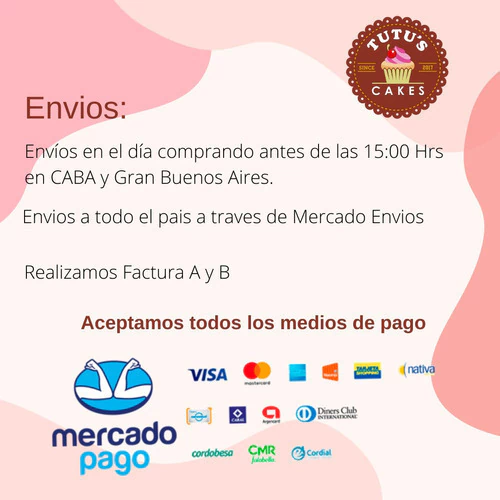 o Mercado Envíos a todo el país. Podés calcular el costo y tiempo de envío ingresando tu código postal en el calculador que aparece en la parte superior izquierda de la pantalla. Todas las ventas se despachan dentro de las 24 hs posteriores a la acreditación del pago.